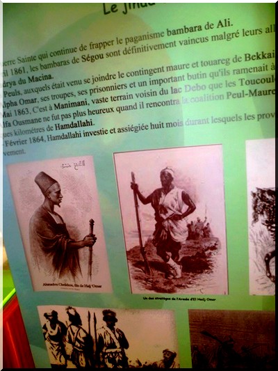 Il fut le premier africain à intégrer l’académie militaire de saint-Cyr. L’histoire et l’effigie des érudits de l’Islam El Hadj Seydou Nourou Tall et de Thièrno Mountagha Tall sur des posters géants. La falaise de Bandiagara, la chambre où naquit le conquérant Omarien, quelques combattants de son armée entre autres archives.