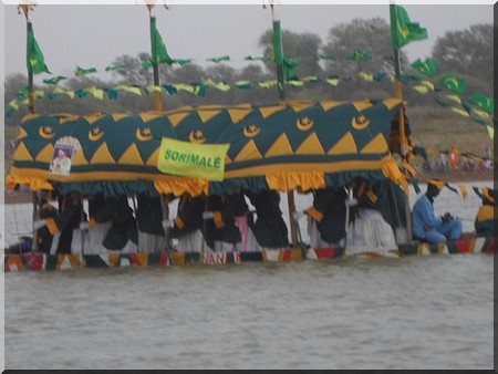 Ce fut ensuite le défilé des pirogues de Sorimallé, de Windingue et de M’Bagne. Une atmosphère riche en couleurs et sons, rythmée de temps en temps par des coups de feu déclenchés par des fusils traditionnels.Une personne d’un âge assez avancé assise derrière nous, ne manquera pas en bon connaisseur sans doute, de dire : « le Fifire a bel et bien commencé ».