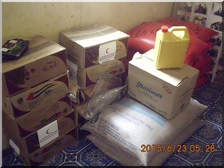 Ces kits sont composés de sucre, de pâtes alimentaires, d’huile et de dattes et il s’agit d’un don de Qatar Charity par son bureau en Mauritanie. Notons que chaque kit comprend 5kg de sucre, 2kg de dattes, 1litre d’huile et 2 kg de pâtes alimentaires.