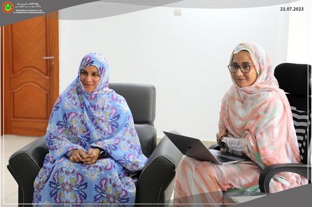Étaient présents le Secrétaire général du Ministère, Monsieur Cheibete Habib Sidi Maouloud, la Conseillère technique chargée de la Communication, Madame Aicha Lekhal, le Directeur des Études, de la Planification et de la Coopération, Monsieur Mohamed Moustapha, la chargée de programme jeunesse auprès de l’UNICEF, Madame Bouchra Khaddad Moctar, et la spécialiste protection sociale, Madame Oumou Barou Sow.