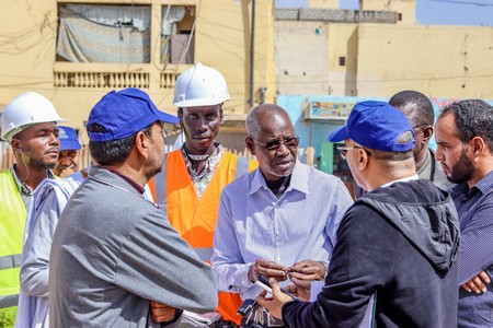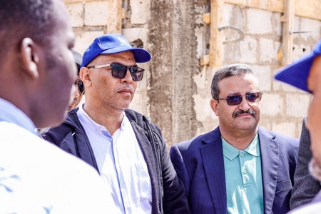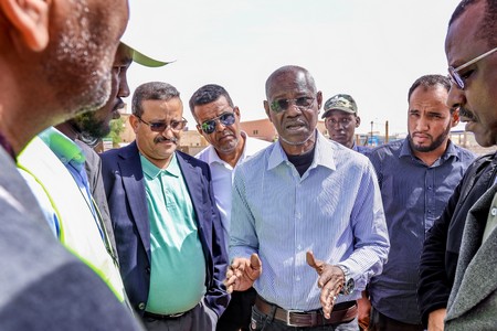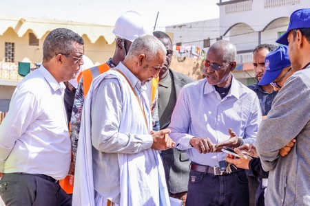 Son Excellence le Ministre était accompagné du Conseiller chargé de la communication, Monsieur Cheikh Ahmed Ould Eleiwa, du Directeur des Bâtiments et des Équipements Publics, Monsieur Brahim Ould Sghair, du Directeur Général de l’Agence de Développement Urbain, Monsieur Sidi Mohamed Ould Bouna, du Directeur technique de l’Agence, Monsieur Mohameden Ould Ahmed Salem, et des ingénieurs responsables des travaux.