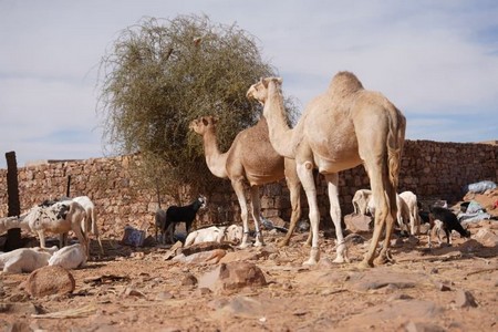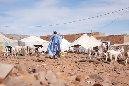 Au cœur de l’Adrar, à 30 kilomètres au sud de la cité historique de Ouadane, le paysage est un océan de sable et de roche. C’est ici que vivent Aamar et sa famille, nomades depuis des générations. « Nous sommes des alentours de Ouadane », explique l’homme de 55 ans. « Parfois nous sommes proches et parfois on s’éloigne.